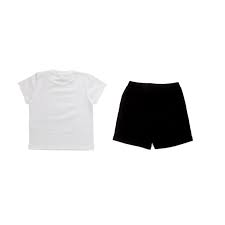 • Black shorts and a white T-shirt